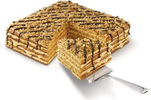 Proef de heerlijke, warme smaak van kaneel in de klassieke MARLENKA® honingtaart. Deze 800 gram taart combineert het traditionele Armeense recept met een subtiele kruidige twist, perfect voor iedereen die houdt van een beetje extra warmte en aroma in zijn dessert.