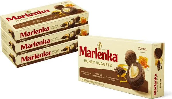 Ervaar een onweerstaanbare combinatie van rijke cacao en natuurlijke honing met de Marlenka Nuggets Cocoa. Deze zachte, smeuïge honingballetjes zijn geïnspireerd op het traditionele Armeense familierecept en verrijkt met de diepe smaak van cacao – voor een verfijnde, luxueuze traktatie in mini-formaat.