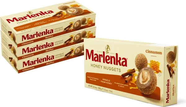 Laat je betoveren door de geur en smaak van Marlenka Nuggets Cinnamon – zachte honinggebakjes met een subtiele toets van ceyloncinnamon. Deze verfijnde lekkernij combineert het beste van twee werelden: de traditionele honingtaart volgens Armeens recept en de warme, kruidige toets van kaneel.
