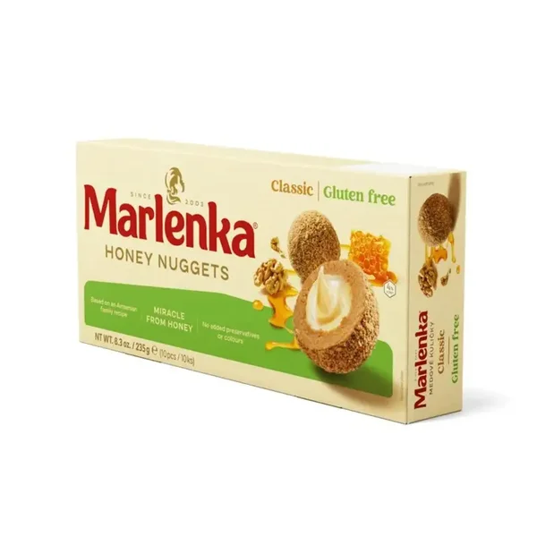 Marlenka Nuggets Gluten Free zijn ambachtelijke honinggebakjes in miniformaat, met dezelfde rijke smaak en zachte textuur als de originele nuggets, maar zonder gluten. Een perfecte keuze voor iedereen die glutenvrij eet, zonder concessies te doen aan kwaliteit of genot.