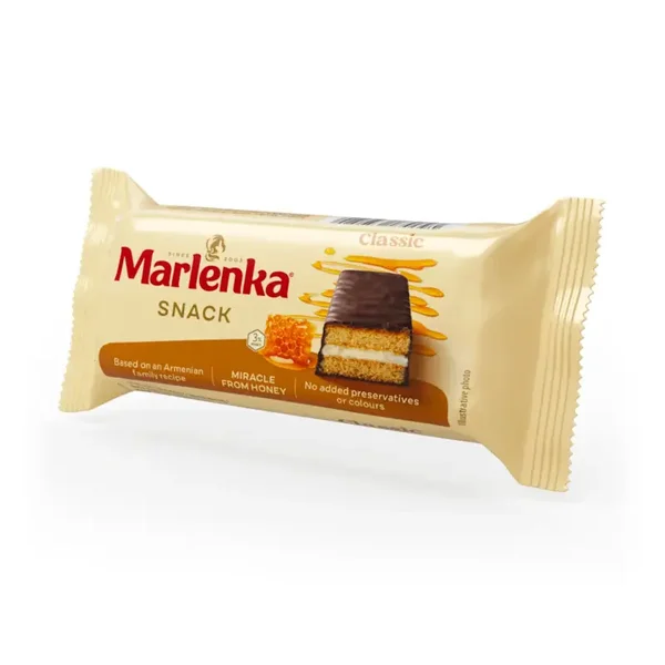 De MARLENKA® Honingsnack Classic 50 g is de kleine, handige versie van de iconische honingtaart – perfect voor onderweg, als tussendoortje of snelle traktatie. Gemaakt met echte bijenhoning, zonder kunstmatige toevoegingen en volgens het traditionele Armeense familierecept.